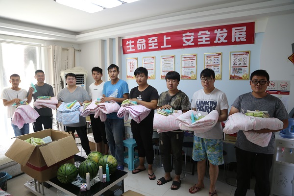 6月22日,在應急演練開始前,孫瑞舉到單縣項目部駐地進行了調研,代表公司工會“送清涼”到項目一線員工手中;同時,他還在項目駐地組織了安全培訓,從安全生產“四不傷害”原則出發,以自己的親身經歷和公司曾經發生過的事故案例出發,語重心長地告訴大家一定要重視安全培訓教育和應急演練活動,真正將安全生產責任制落到實處。