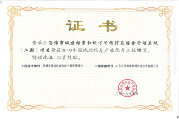 該項目對原管理系統進行了更新升級+庫房管理等系統建設,并補充了新增的地下管線數據,榮獲2019中國地理信息產業優秀工程銀獎。