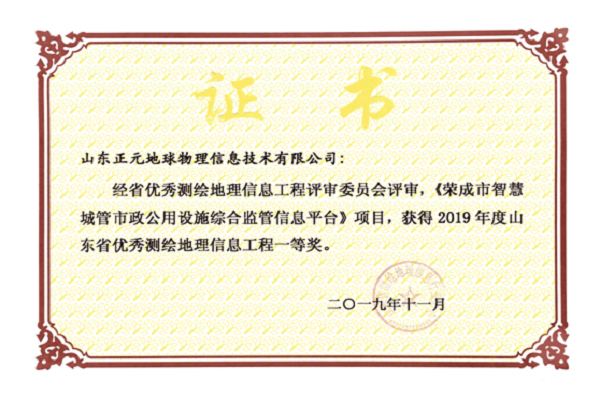 該項目建立了市政公用設(shè)施綜合監(jiān)管信息平臺,榮獲2019年度山東省優(yōu)秀測繪地理信息工程一等獎。