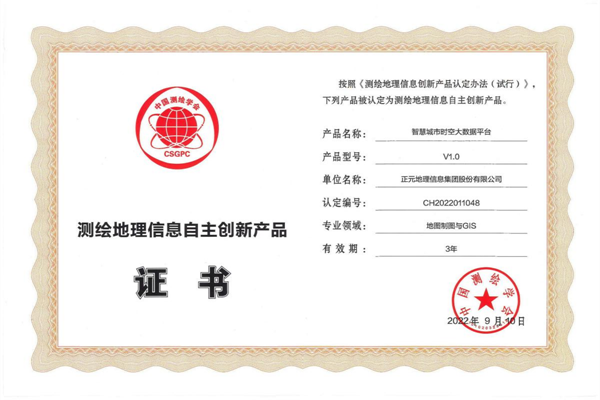 近日,集團公司科技中心自主研發(fā)的“正元CIM基礎(chǔ)平臺”和“智慧城市時空大數(shù)據(jù)平臺”通過2022年測繪地理信息自主創(chuàng)新產(chǎn)品認定,獲得測繪地理信息自主創(chuàng)新產(chǎn)品榮譽證書。