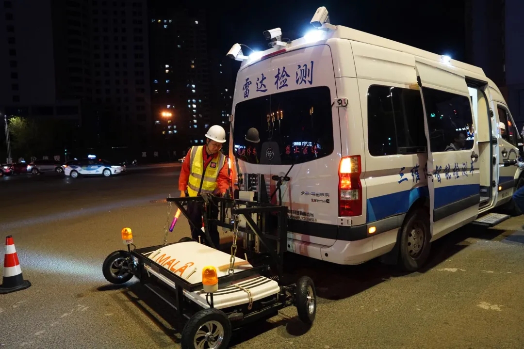 為最大程度降低對市民出行的影響,減少探測干擾,此次探測采取夜間查勘模式,從21:00至次日凌晨2:00進行作業�!拔覀儑栏褡裱畽z測—復測—驗證’三步檢測機制,在探地雷達檢測后,通過鉆探驗證,對數據異常點位精準復核,使用內窺鏡對地下情況詳細探查,明確病害異常位置、類型、范圍、埋深等信息,確保對道路隱患進行精準排查整治�!� 現場檢測的高級工程師尹紀超介紹。