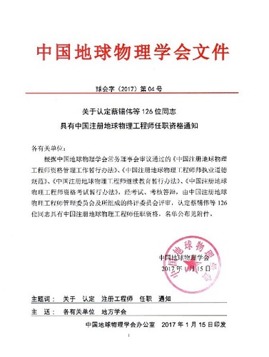 據(jù)悉,經(jīng)考核、考試,全國范圍內(nèi)獲得注冊(cè)地球物理工程師資格認(rèn)證的專家共126人。、