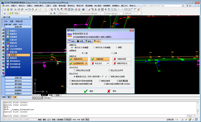 管線成圖自定義:用戶可根據實際要求自定義管線的“管線種類”、“管線字段”,“管線特征”、“圖幅信息”等,以適應不同數據格式的要求。